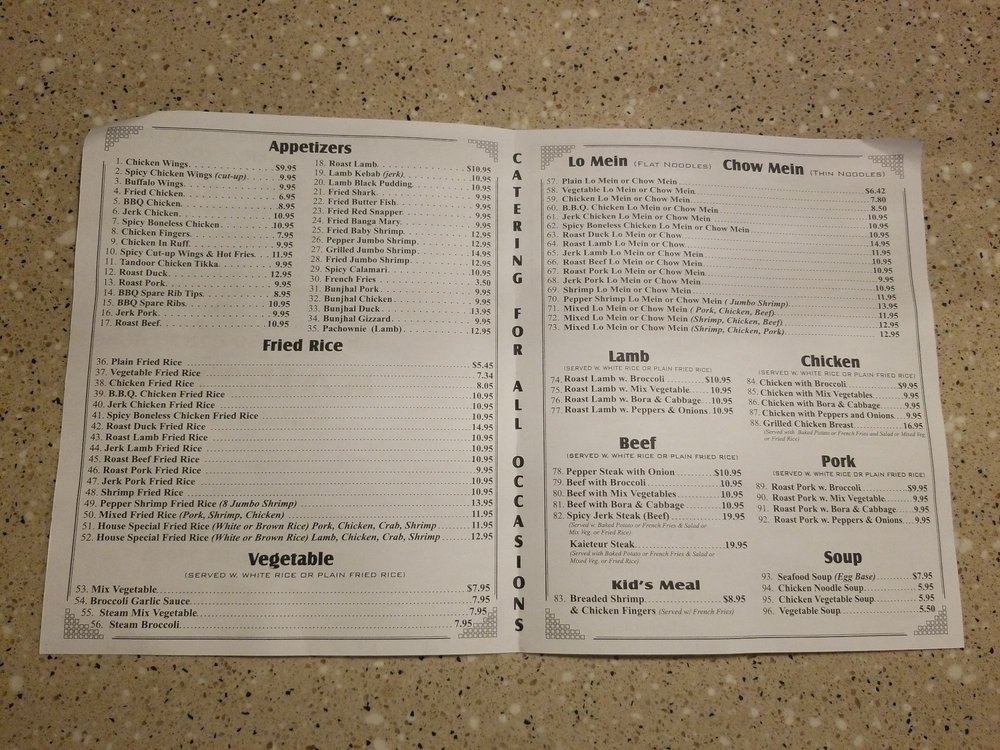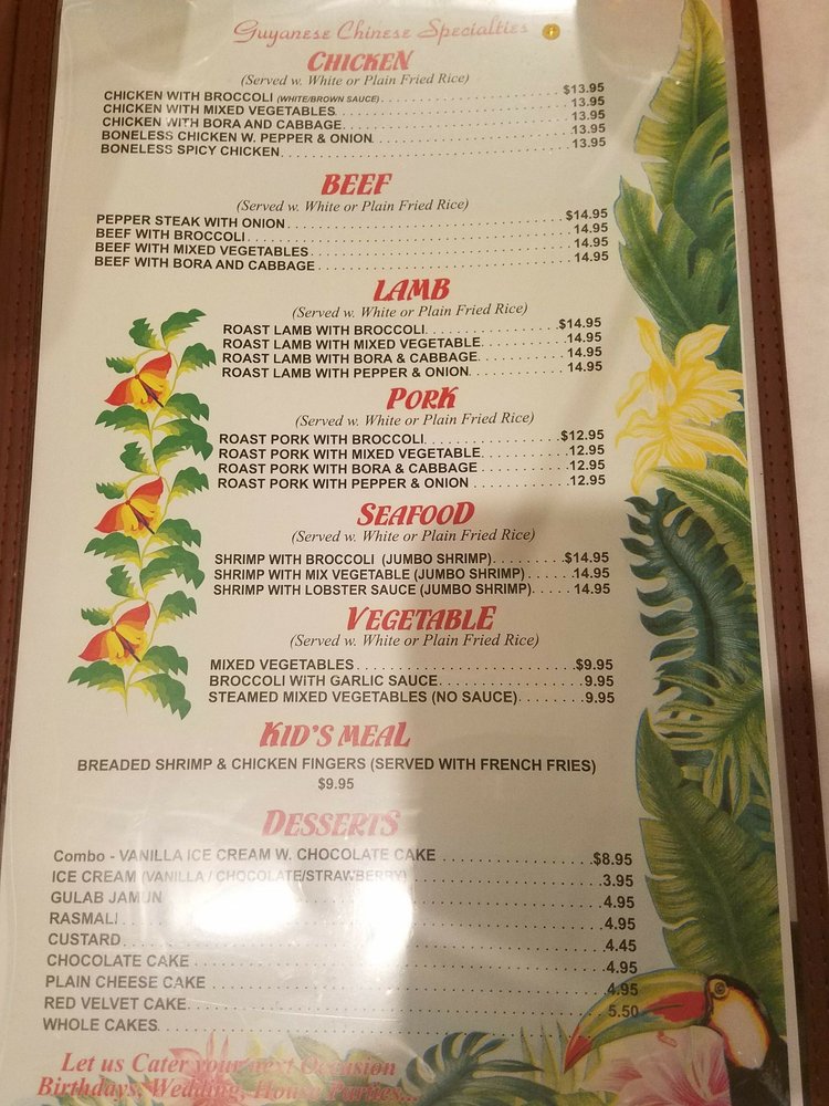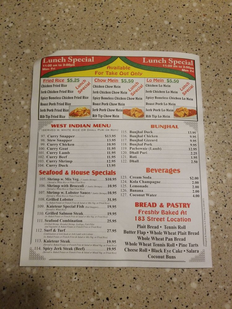 Welcome to Kaieteur Restaurant, a hidden gem in Richmond Hill, NY, offering a fusion of Guyanese and Chinese Caribbean cuisine. With a casual atmosphere, full bar, and friendly staff, this spot is perfect for a date night or group dinner. The menu boasts a variety of options, such as bbq chicken lo mein, jerk chicken fried rice, seafood combinations, and the highly recommended roast duck. Customers rave about the flavorful dishes, generous portions, and unique blends of spices and sauces. Enjoy the laid-back ambiance with family or friends while indulging in delectable appetizers like wings, fried calamari, and shrimp wontons. Don't miss out on their signature dishes like pepper shrimp lo mein and jerk chicken fried rice. Kaieteur Restaurant truly delivers a memorable dining experience with its top-notch service and delicious comfort food.